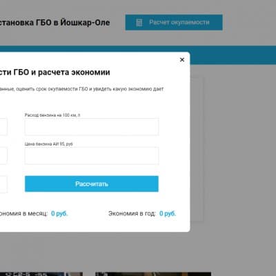 На сайте реализован расчет стоимости и окупаемости ГБО за период времени, портфолио машин, на которые установлено ГБО от данной фирмы.