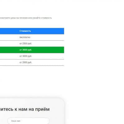 Были изучены конкуренты и сделана простая структура сайта, вся ключевая информация в легком доступе. Есть запись к конкретным специалистам (на данный момент блок скрыт, штат не полный в компании). Так же запись на любой вид услуг.
