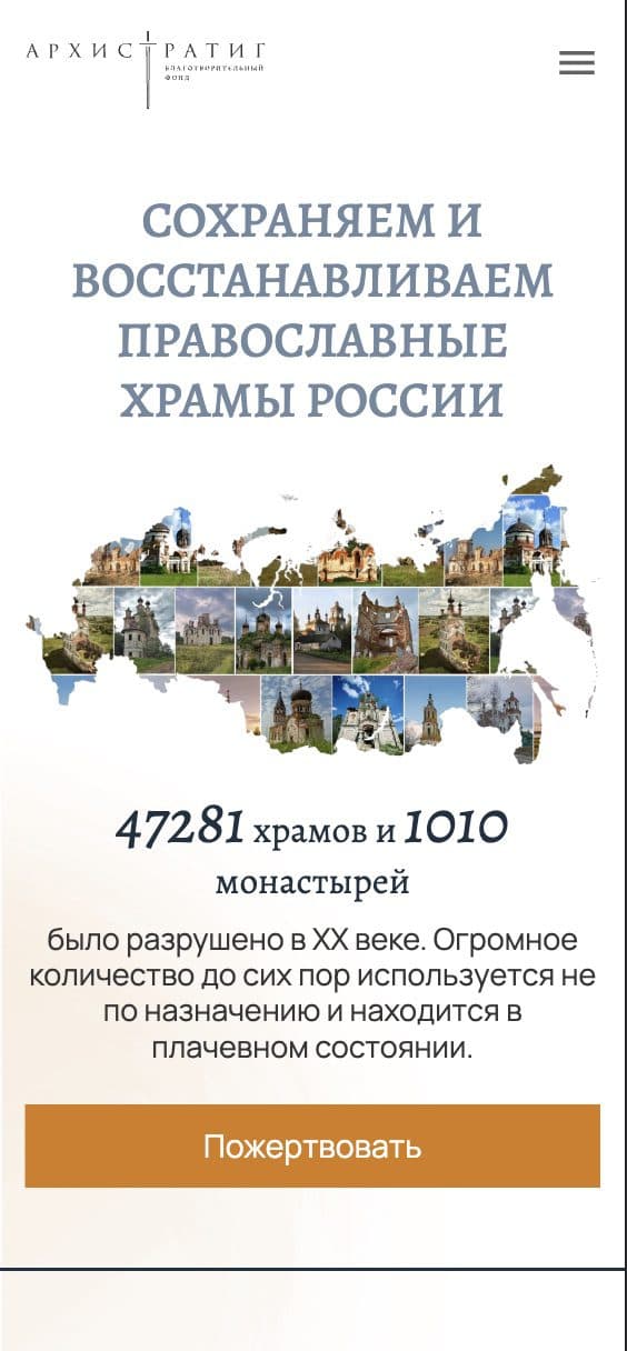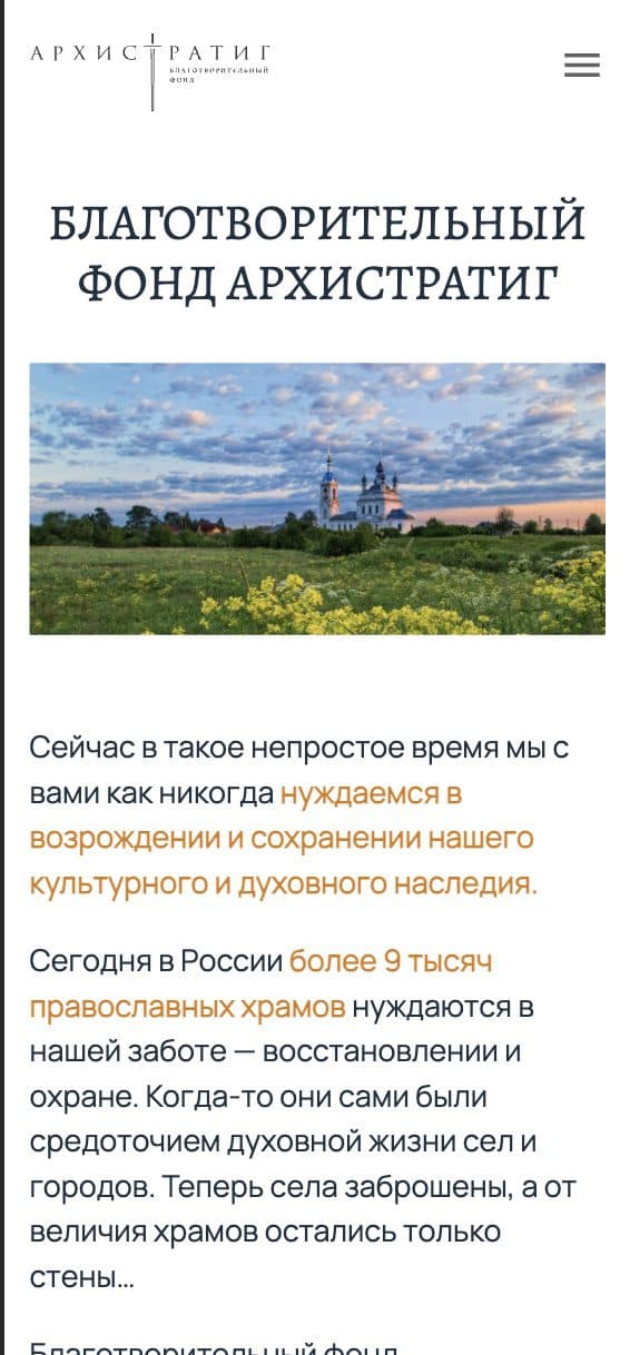 Фонд «Архистратиг» уже имел сайт, но сделанный на малоизвестной CMS с устаревшим дизайном и практически нулевой функциональностью. Даже встроенная платёжная система была нерабочей.