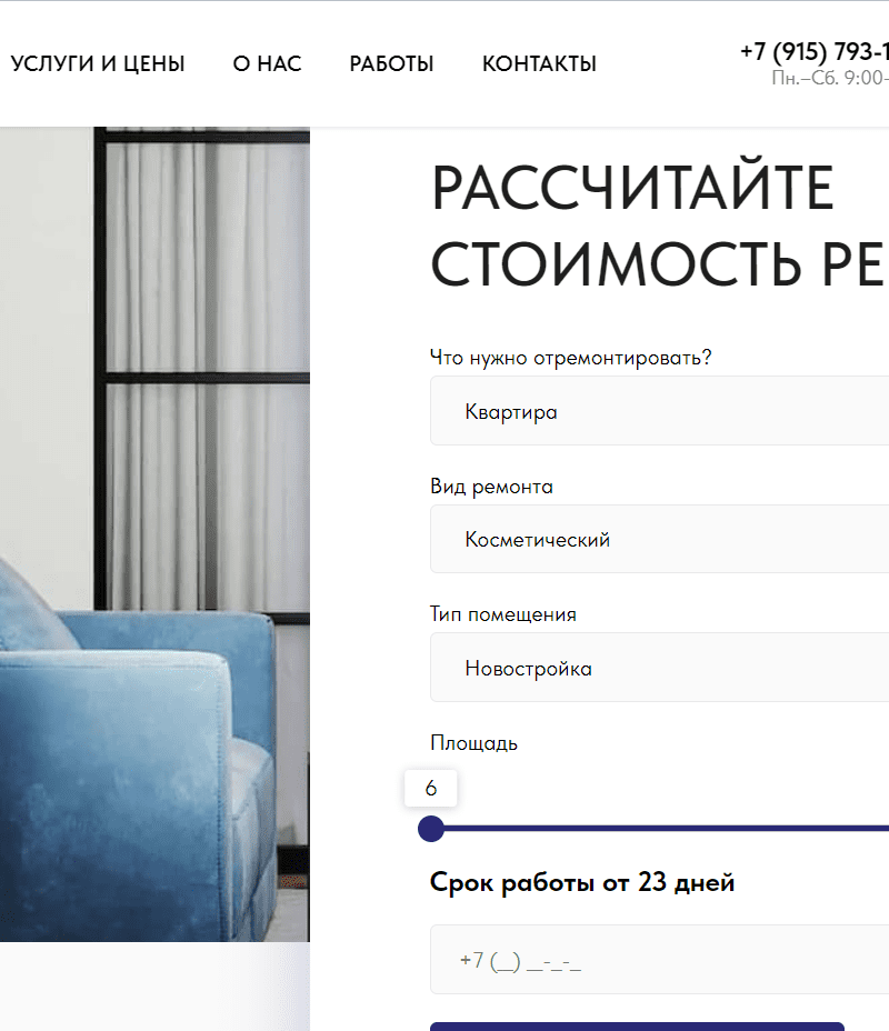 Наш постоянный клиент, которому мы делали сайт по натяжным потолкам так же занимается ремонтом и отделкой помещений, его реклама шла на заявки с газет, подъездов и «сарафанному радио». Мы решили масштабироваться и выйти с данной услугой в интернет. Был предложен вариант разработки простого-быстрого лендинга со всеми вытекающими.