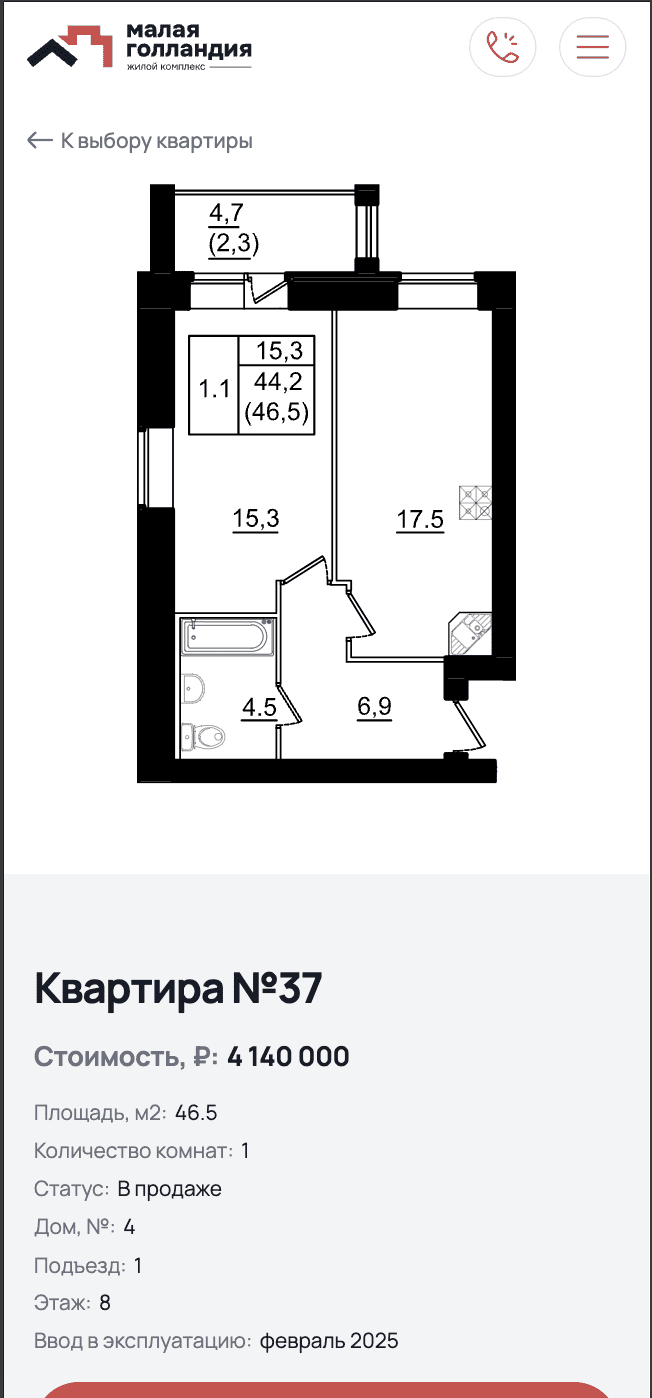 Сайт понадобился в рамках старта продаж — с февраля 2024 года планировалось открытие заявок на первые квартиры. Задача: создать удобный и масштабируемый сайт, заточенный под UX подачи жилой недвижимости, с возможностью гибкого добавления следующих домов в будущем.