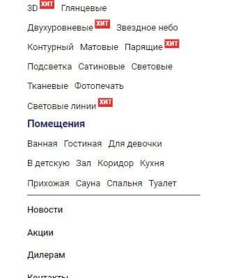 - Сделано множество страниц под каждый вид потолков, дабы точечно настроить контекстную рекламу.