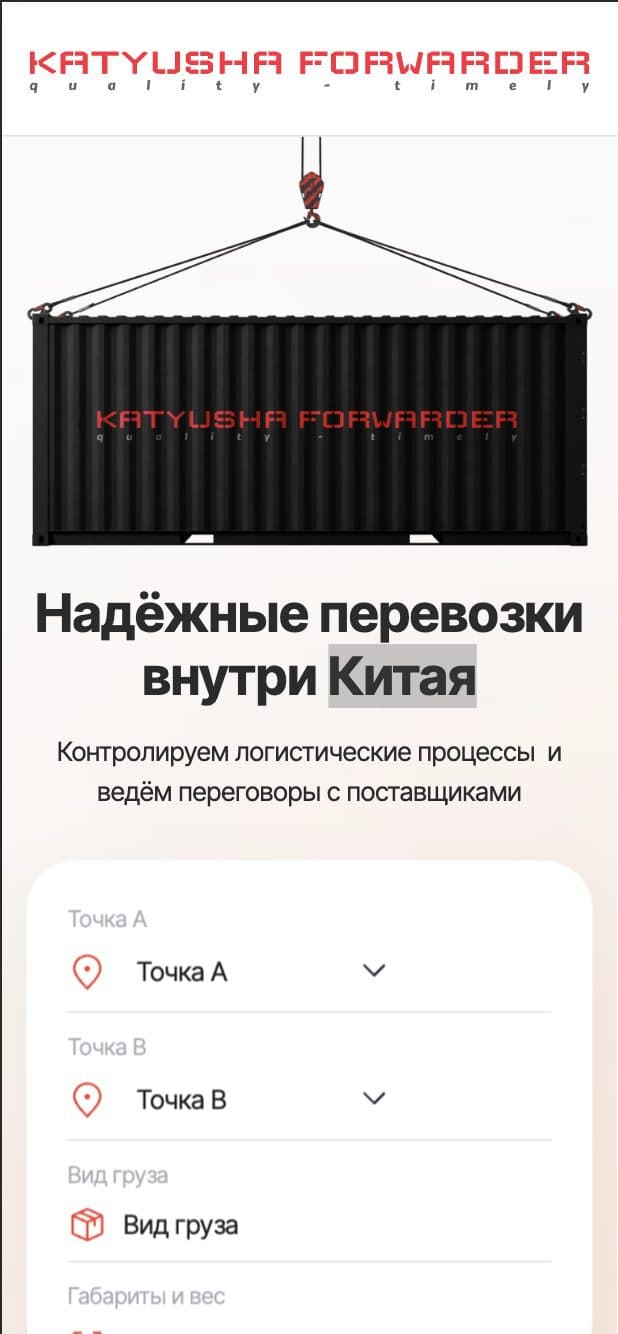 Не большой проект, лэндинг для продвижения и рекламы грузоперевозок для компании Katusha Forwarder. Основная задача была — сделать быстро и презентабельно.