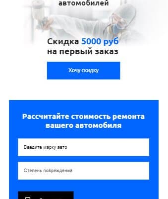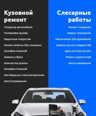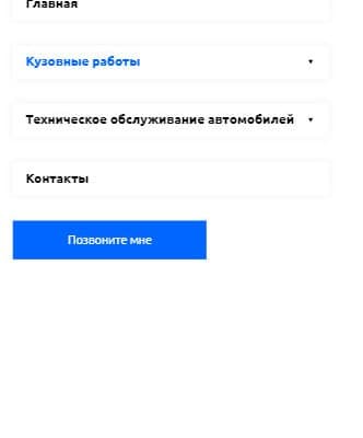 Заходя на главную страницу, мы видим выбор — кузовной ремонт, или слесарные работы. Далее идет навигация с различающимся дизайном. В каждом из под выборов есть свои услуги, под каждую услугу — своя страница. Навигация вышла очень простой, но тем временем структура обширная. Таким образом можно точечно запускать рекламные кампании для всех страниц.