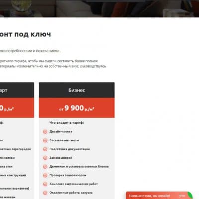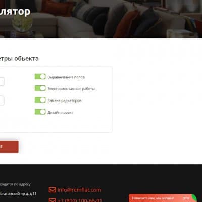 На сайте присутствуют два калькулятора, которые помогают привлечь клиента (квиз) на оставление заявки и просто узнать сколько примерно будет стоить ремонт.